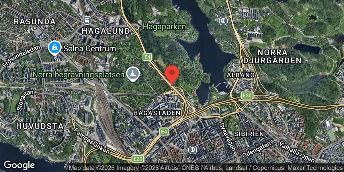 - Plats: E4 vid Trafikplats Haga Södra (165), efter utfarten från Norra länken